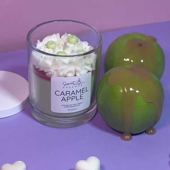 Experience the delightful blend of autumn sweetness with our Caramel Apple Dessert Candle. This mouthwatering fragrance combines the juicy aroma of freshly picked apples with the rich, buttery scent of golden caramel. Hand-poured with 100% natural soy wax it offers a clean, long-lasting burn that fills your home with cozy warmth and nostalgic charm. Perfect for creating a welcoming ambiance during the fall season or whenever you're craving a hint of sweetness.