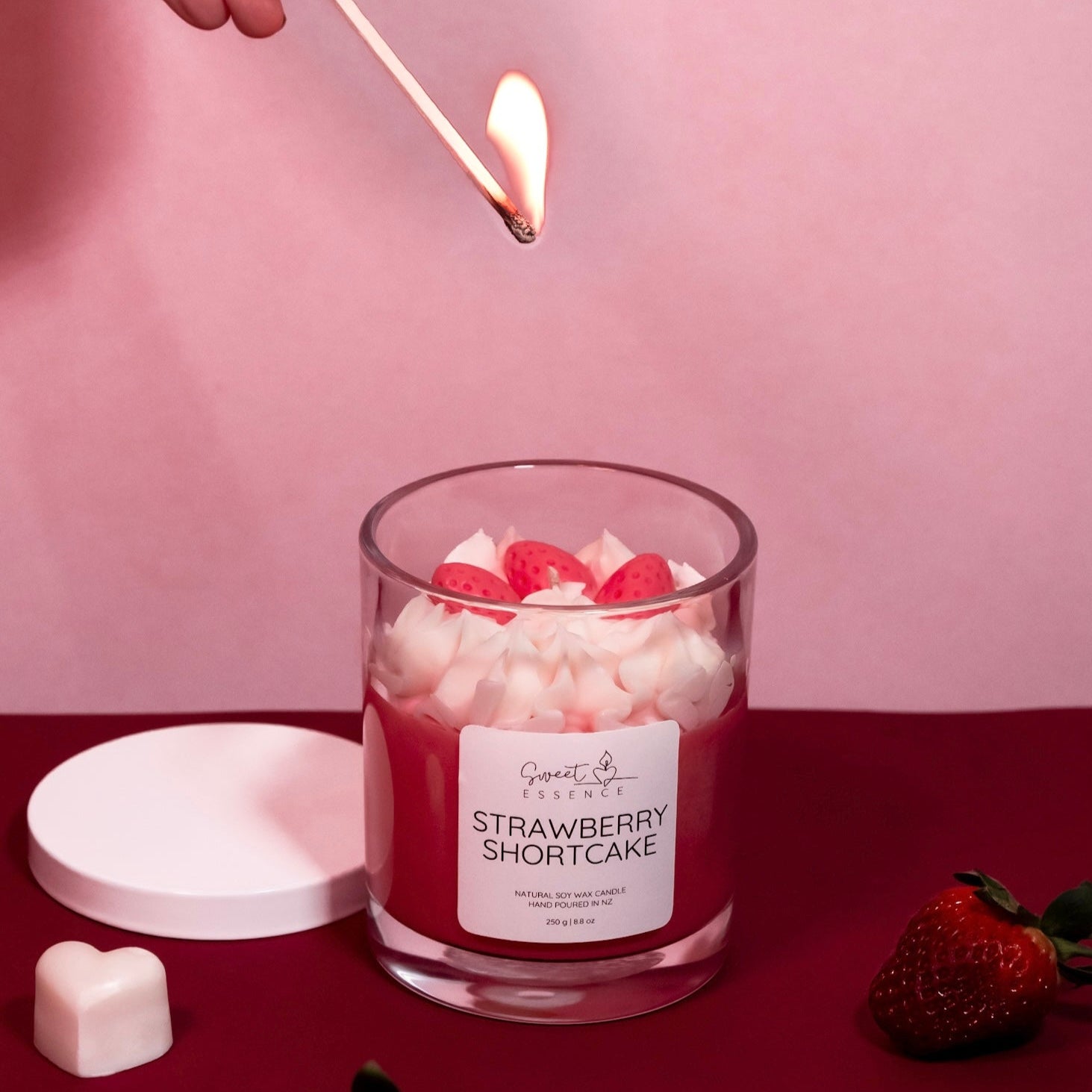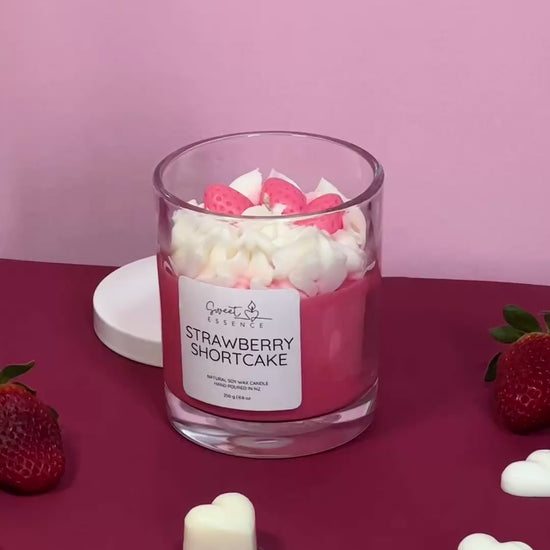 Transform your space into a dessert dream with our Strawberry Shortcake Dessert Candle. The mouthwatering scent of ripe strawberries, fluffy whipped cream, and buttery cake will fill the air, creating the perfect sweet escape. Hand-poured with 100% natural soy wax, this candle offers a cozy, long-lasting fragrance that will make your home feel as inviting as a warm slice of cake on a sunny afternoon. Light it up and let the scent of this beloved classic treat bring a touch of sweetness and joy to any room.